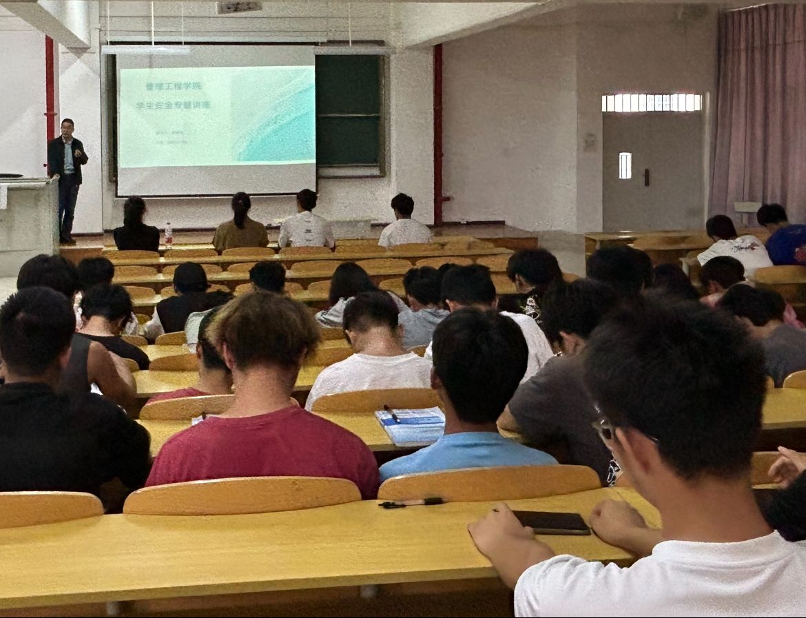 2025-09-28筑牢校园安全防线 护航学生健康成长为持续深化平安校园建设,切实增强师生安全防范意识与自我保护能力,9月25日下午,管理工程学院在阶梯教室成功举办以“防溺水、防诈骗、防交通事故”为主题的安全教育讲座。本次讲座由党支部书记李继国同志主讲,部分师生代表参加。李继国书记结合近期发生的真实案例,围绕三大安全主...
